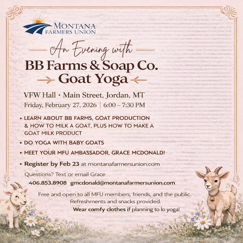 Join us for a fun and educational Ladies Who Ag evening in Jordan! 🐐🧘‍♀️