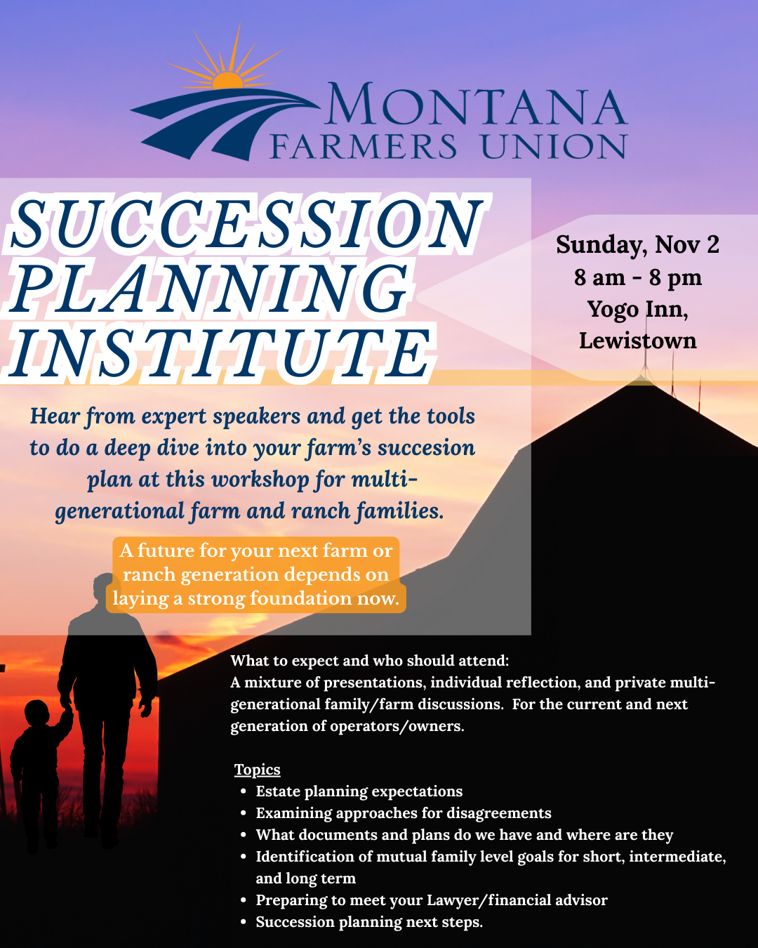 Succession Planning Institute- Sunday, Nov. 2 8 am -8 pm Yogo Inn, Lewistown