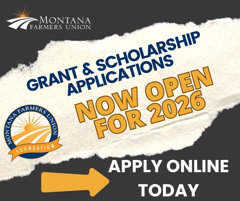 High school seniors, current college students, and non-traditional students are encouraged to apply by April 3. Applicants must be MFU members; Montana FFA and 4-H members receive free MFU memberships upon request. MFU members also are eligible for several National Farmers Union scholarships. Learn more at nfu.org.